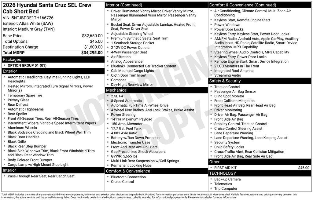 - Combo APR Offer: 5.39% APR for 60 months on select 2026 Hyundai Santa CruzDetails