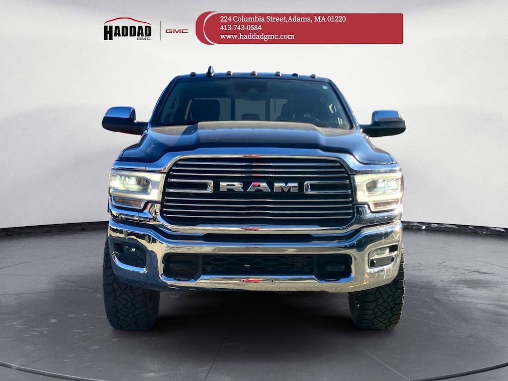 The selling price of the vehicle is market price plus the dealer documentation fee of $599, and the title fee of $5.00 that dealers may charge to procure the certificate of title. This vehicle may have an open recall. The dealer will make all reasonable attempts to clear this recall. If parts or non-remedy repairs are not available there may be a continued claim to monitor. Bed Utility Group (Deployable Bed Step, LED Bed Lighting, and Spray In Bedliner), Heavy Duty Snow Plow Prep Group (220 Amp Alternator), Laramie Level 2 Equipment Group (1-Year SiriusXM Guardian Trial, 17 Speaker High Performance Audio, 2nd Row In Floor Storage Bins, 5-Year SiriusXM Traffic Service, 5-Year SiriusXM Travel Link Service, Auto High Beam Headlamp Control, Blind Spot & Cross Path Detection, Disassociated Touchscreen Display, Exterior Mirrors w/Memory, Foam Bottle Insert (Door Trim Panel), For Details Visit DriveUconnect.com, GPS Navigation, HD Radio, Heated Second Row Seats, Media Hub w/2 Charge Only USBs, Mirror-Mounted Aux Reverse Lamps, Power Adjustable Convex Aux Mirrors, Power Adjustable Pedals w/Memory, Power Chrome Tow Mirrors w/Convex Spotter & Memory, Radio: Uconnect 4C Nav w/8.4 Display, Radio/Driver Seat/Mirrors/Pedals Memory, Rain Sensitive Windshield Wipers, Ramcharger Wireless Charging Pad, Remote Tailgate Release, Selectable Tire Fill Alert, Single Disc Remote CD Player, SiriusXM Satellite Radio, SiriusXM Traffic Plus, SiriusXM Travel Link, and Ventilated Front Seats), Protection Group (Tow Hooks), Quick Order Package 2ZH Laramie, Safety Group (Adaptive Cruise Control w/Stop and Full Speed Forward Collision Warning Plus), 10 Speakers, 115V Auxiliary Rear Power Outlet, 2 Way Rear Headrest Seat, 3.73 Axle Ratio, 4 Way Front Headrests, 4-Wheel Disc Brakes, 4.10 Axle Ratio, ABS brakes, Active Noise Control System, Adjustable pedals, Air Conditioning, Alloy wheels, AM/FM radio: SiriusXM, Anti-Spin Differential Rear Axle, Apple CarPlay/Android Auto, Auto-dimming Rear-View mirror, Automatic temperature control, Brake assist, Bumpers: chrome, Center Hub, Clearance Lamps, Compass, Delay-off headlights, Driver door bin, Driver vanity mirror, Dual front impact airbags, Dual front side impact airbags, Electronic Stability Control, Electronically Controlled Throttle, Front anti-roll bar, Front Center Armrest w/Storage, Front dual zone A/C, Front fog lights, Front reading lights, Front Seat Back Map Pockets, Fully automatic headlights, Garage door transmitter, Heated door mirrors, Heated Front Seats, Heated front seats, Heated Steering Wheel, Heated steering wheel, Illuminated entry, Leather steering wheel, Leather Trim 40/20/40 Bench Seat, Low tire pressure warning, Manufacturer's Statement of Origin, Occupant sensing airbag, Outside temperature display, Overhead airbag, Overhead console, Panic alarm, ParkSense Front/Rear Park Assist System, ParkView Rear Back-Up Camera, Passenger door bin, Passenger vanity mirror, Power 2-Way Driver Lumbar Adjust, Power 2-Way Passenger Lumbar Adjust, Power Adjust 8-Way Driver Seat, Power Adjust 8-Way Front Passenger Seat, Power door mirrors, Power driver seat, Power passenger seat, Power steering, Power Sunroof, Power windows, Radio data system, Radio: Uconnect 4 w/8.4 Display, Rear 60/40 Folding Seat, Rear anti-roll bar, Rear reading lights, Rear seat center armrest, Rear step bumper, Rear window defroster, Remote keyless entry, Security system, Speed control, Split folding rear seat, Steering wheel mounted audio controls, Tachometer, Tilt steering wheel, Tip Start, Tire Fill Alert (DISC), Traction control, Trip computer, Turn signal indicator mirrors, Variably intermittent wipers, Vendor Painted Cargo Box Tracking, Voltmeter, Wheels: 18 x 8.0 Polished Aluminum, and Wheels: 20 x 8.0 Painted Aluminum w/Chrome InsertS.
